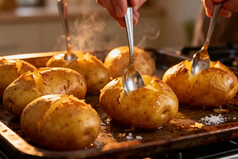 Cuisson des pommes de terre au four : l’astuce de la cuillère métallique pour réduire le temps de moitiéClémentine G.Publié le 2 avril 2026 à 06h10